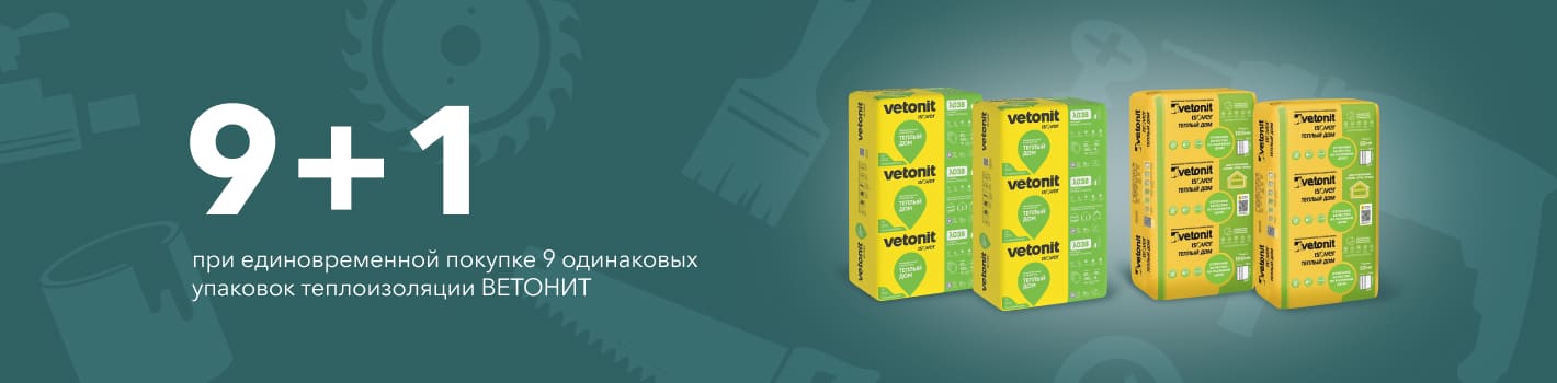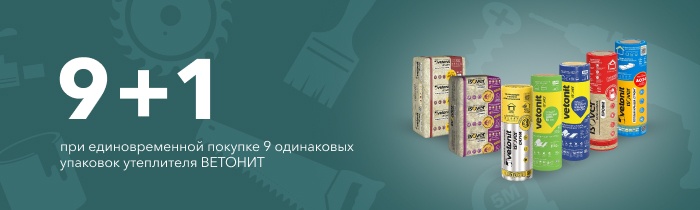 При единовременной покупке 9 одинаковых упаковок теплоизоляции ВЕТОНИТ, 1 аналогичный товар Вы получаете в подарок!