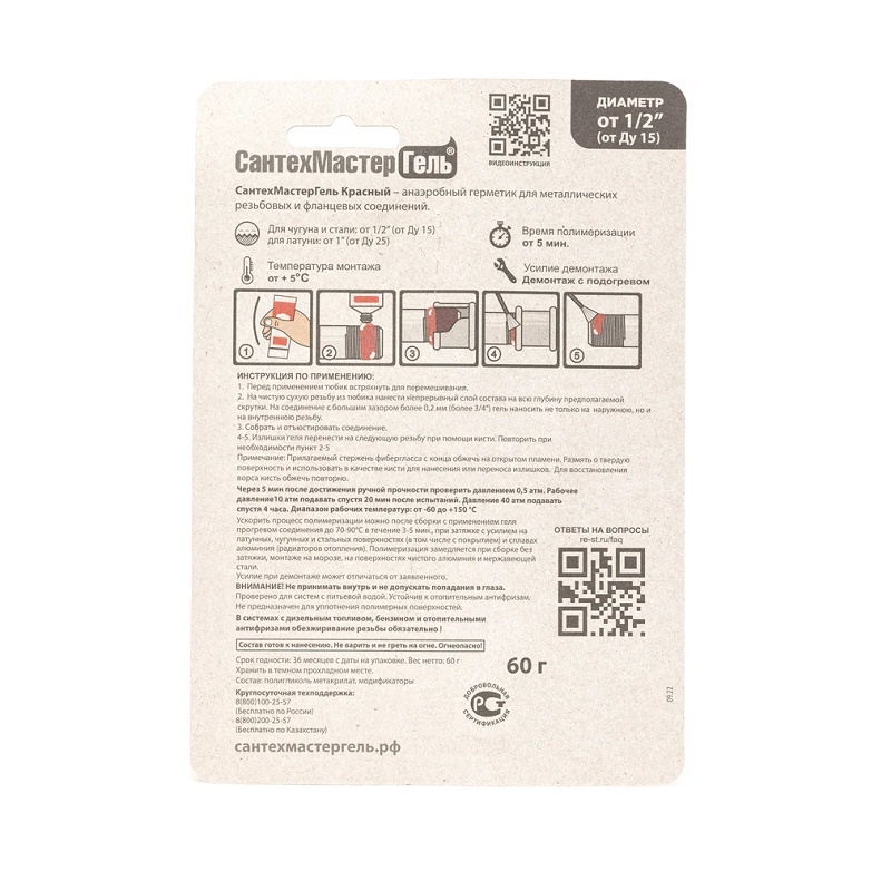Анаэробный клей-герметик Сантехмастергель до 3", красный, 60гр в Стерлитамаке