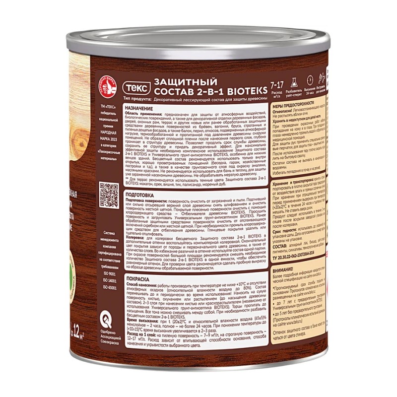 В строительном магазине Сатурн можно купить товар "Антисептик Текс Bioteks состав 2в1 орех (0,8 л)" по цене от 503 руб с доставкой за 2 часа по Стерлитамаку или оформить самовывоз.