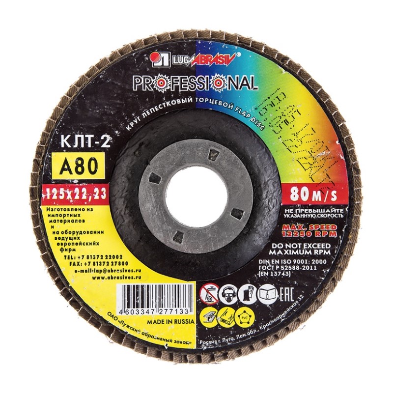 Диск лепестковый по металлу Луга (КЛТ тип 2) конический Р80 125х22 мм