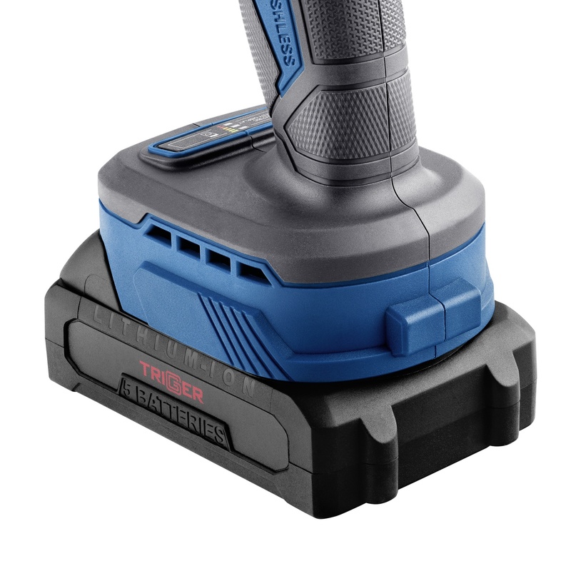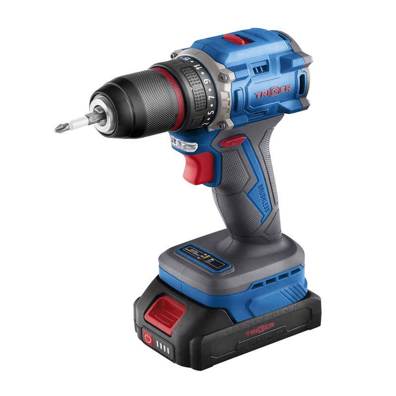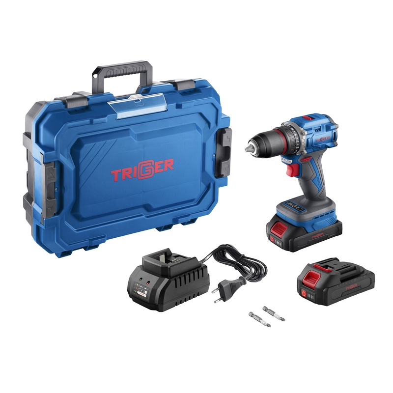 Дрель-шуруповерт Trigger 20121, бесщеточная, 2 аккумулятора Li-ion (2Ач), 18V, 13 мм, 58 Нм, кейс