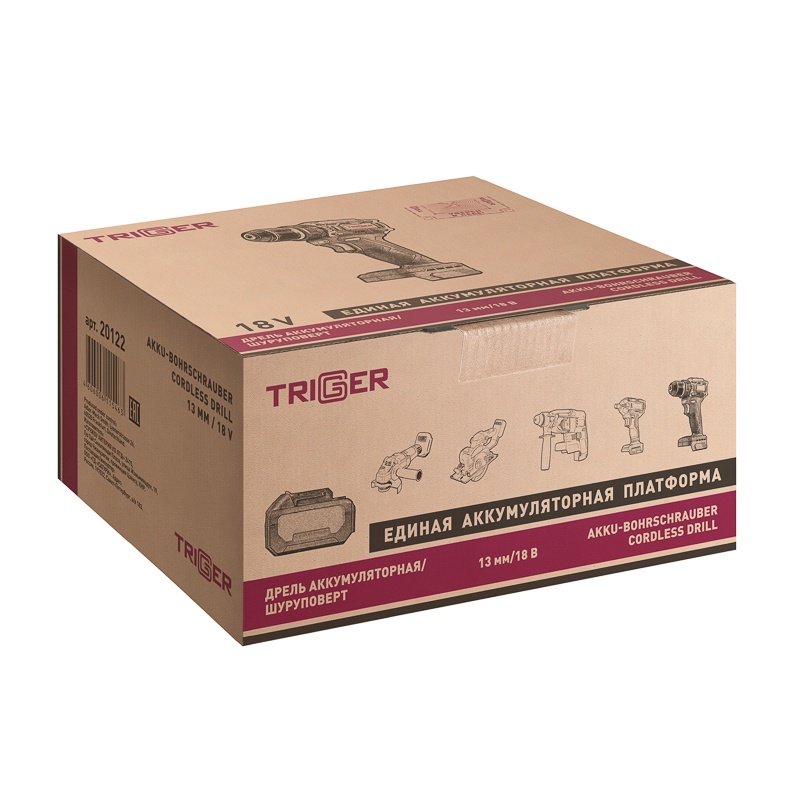 Дрель-шуруповерт Trigger 20122, бесщеточная, 18V, 13 мм, 58 Нм, без аккумулятора и зарядного устройства в Стерлитамаке