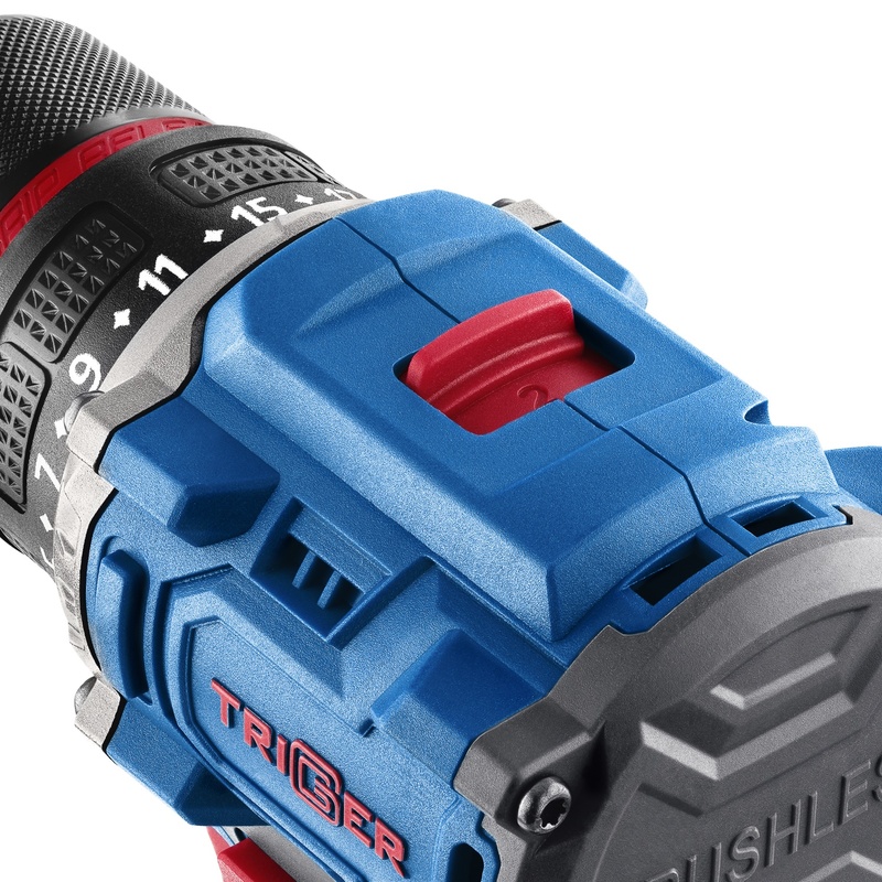 Дрель-шуруповерт Trigger 20122 - мощный бесщеточный шуруповерт с единой аккумуляторной платформой. Отсутствие щеточного узла приводит к уменьшению размера инструмента и увеличивает ресурс двигателя. Металлический 13 мм патрон с функцией Autofix позволяет заменять оснастку одной рукой и определять усилие ее фиксации по характерным щелчкам, а также использовать оснастку больших размеров.