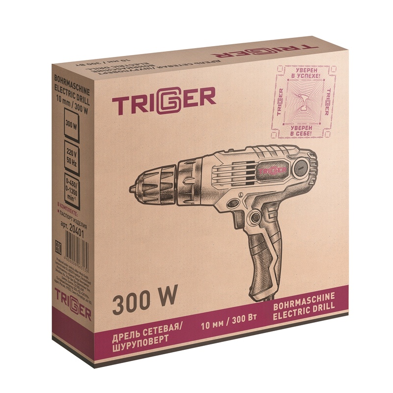 Дрель-шуруповерт сетевая Trigger 20401, 10 мм, 0,32 кВт, 32 Нм, реверс, 0-1000 об/мин в Стерлитамаке