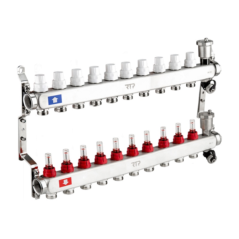 Группа коллекторная RTP 1"х3/4", 10 выходов, 70 градусов, 10 бар