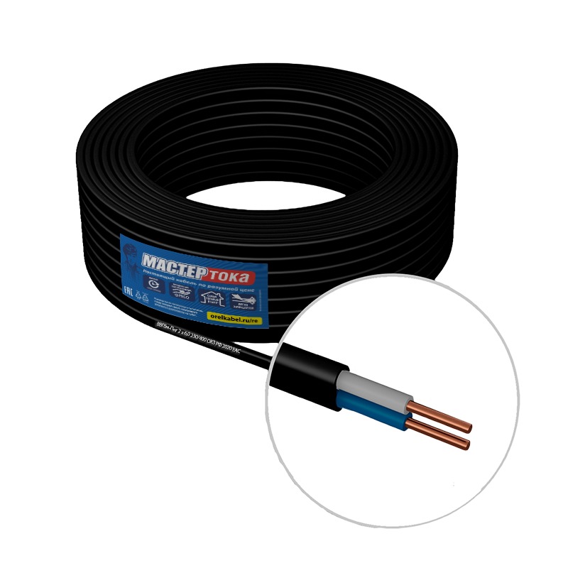 Кабель ВВГбм-Пнг 2х6,0 мм², черный (1 п.м.)