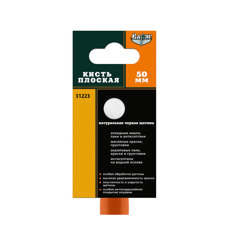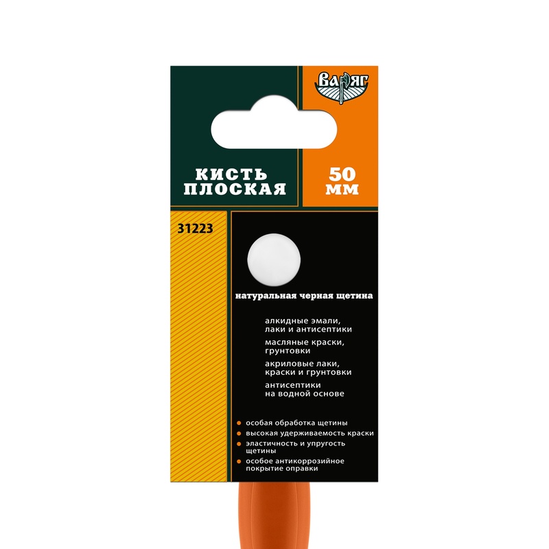 Кисть плоская ВАРЯГ 31223 черная щетина 50 мм