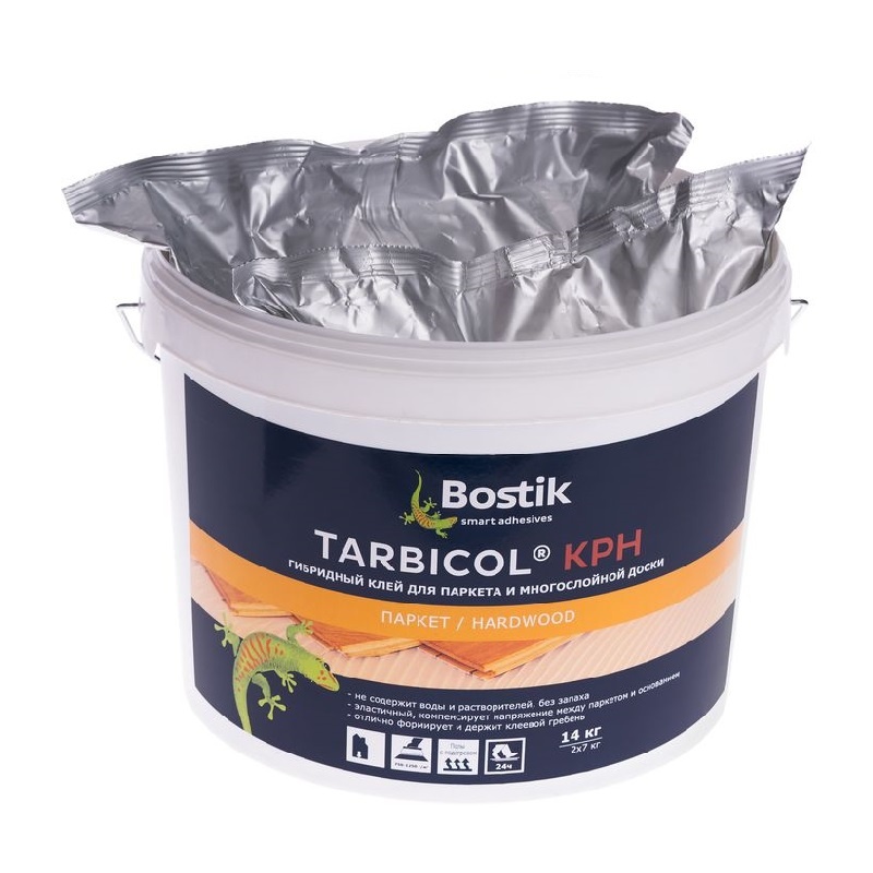 Клей для паркета Bostik KpH предназначен для укладки паркета, инженерной доски, а также штучного паркета, в том числе лакированного. Гибридный клей. Не содержит воды, растворителей, эпоксидных компонентов и изоцианатов. Подходит для большинства напольных покрытий: пробка, фанера, ДСП, OSB. Клеевой раствор не содержит воды.