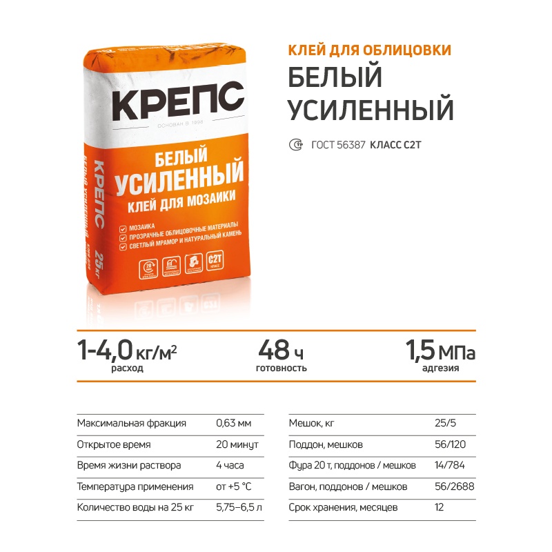 Клей для плитки Крепс Усиленный белый (25 кг)