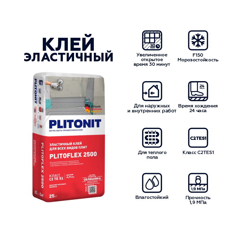 Клей для плитки и керамогранита Plitonit Plitoflex 2500 эластичный (25 кг)