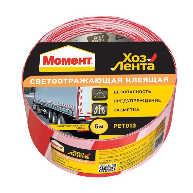 Лента клеящая хозяйственная Момент светоотражающая, 48 мм х 5 м