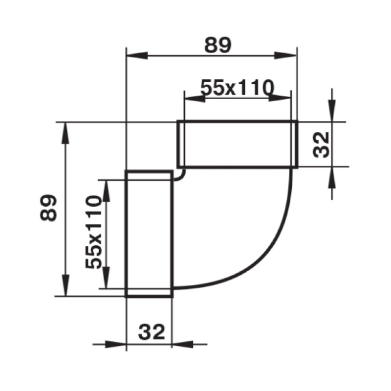 Колено вертикальное Наш Вент 5252, 90 градусов, 110х55 мм