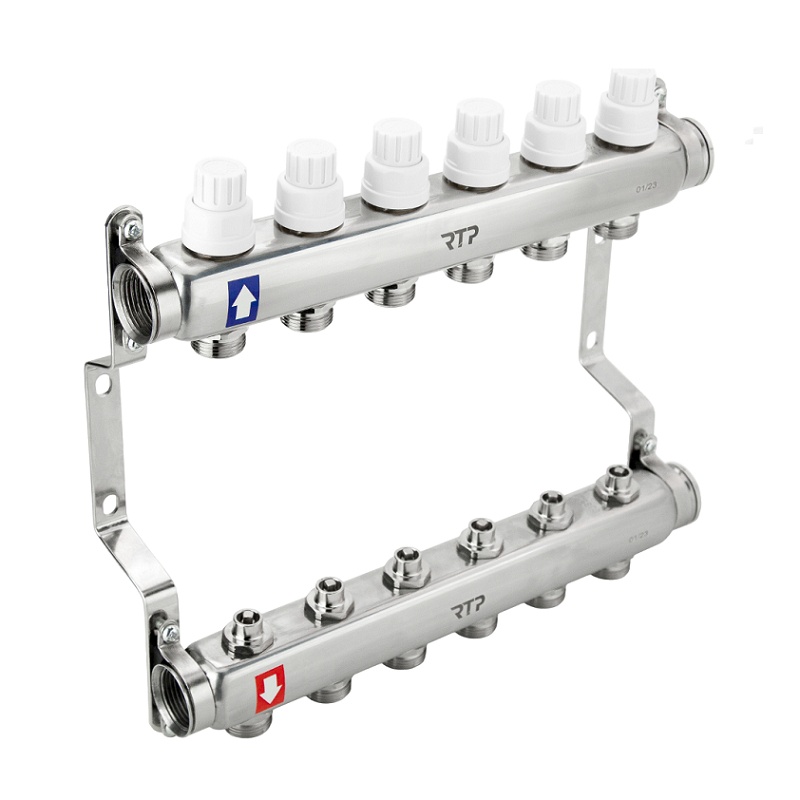 Группа коллекторная RTP 1"х3/4", 6 выходов, 95 гр, 10 бар