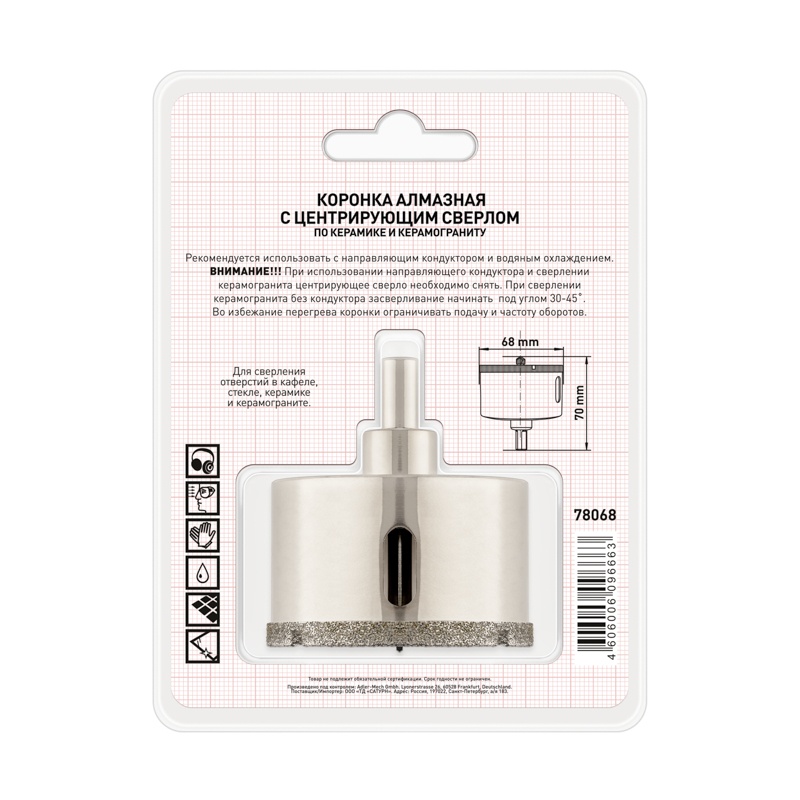 В строительном магазине Сатурн можно купить товар "Коронка алмазная Trigger 78068 68х70мм" по цене от 2143 руб с доставкой за 2 часа по Стерлитамаку или оформить самовывоз.