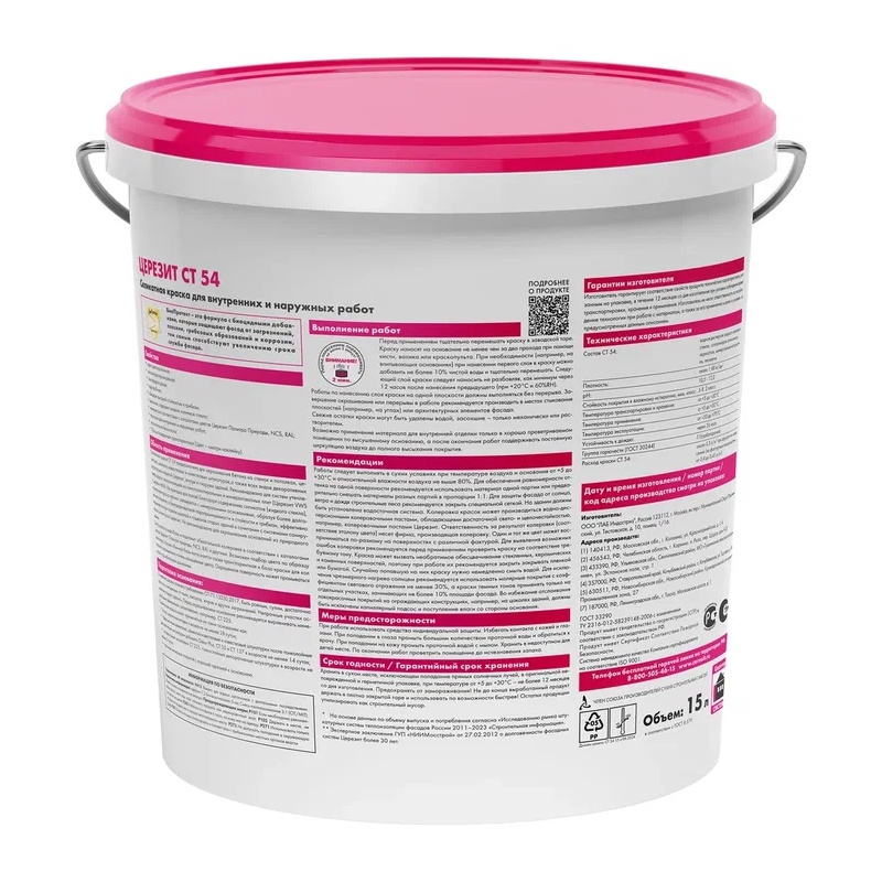 Краска Церезит СТ 54 ВД силикатная фасадная база транспарентная (15 л)