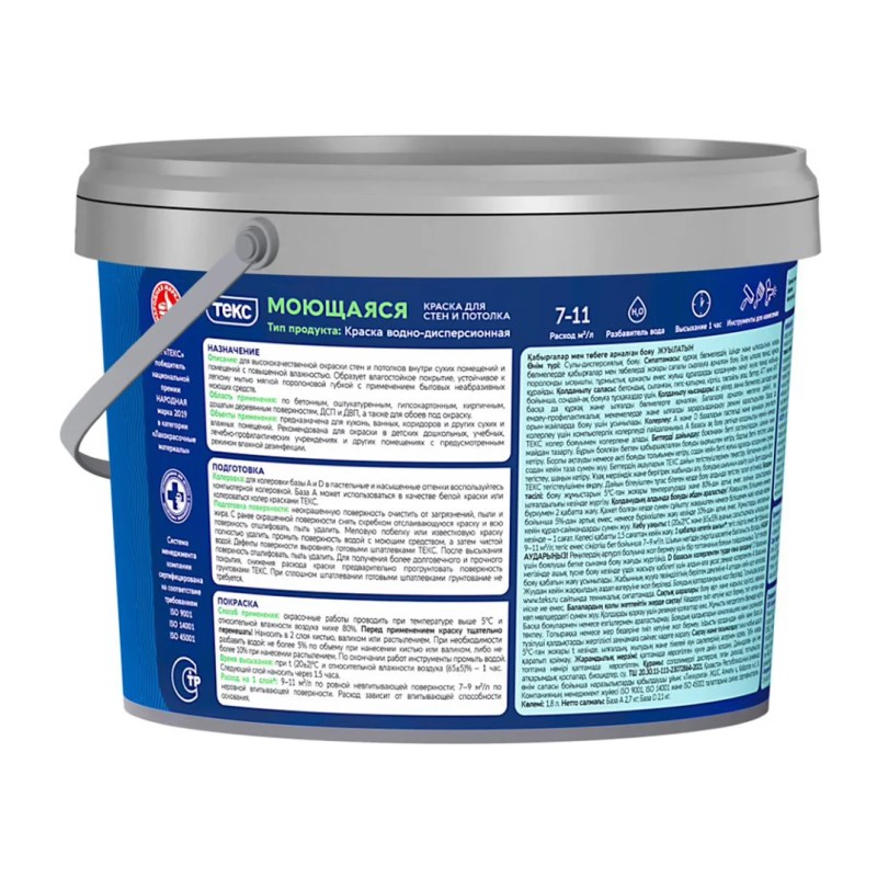 Краска в/д моющаяся Текс Профи основа D (1,8 л)