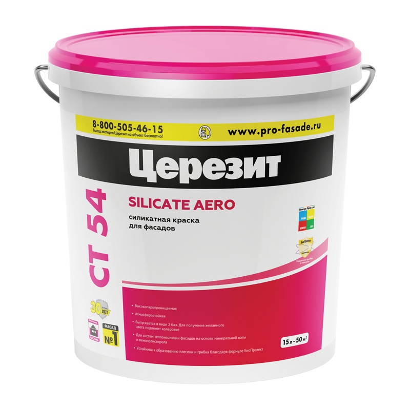 Краска Церезит СТ 54 ВД силикатная фасадная база (15 л)
