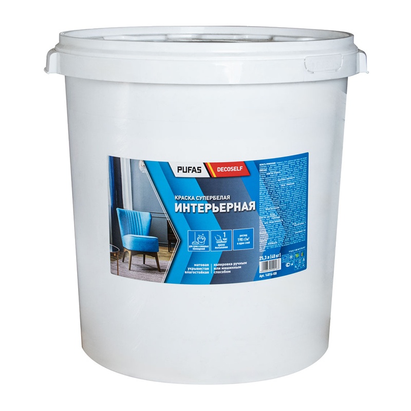 Краска интерьерная Pufas Decoself белая, морозостойкая (40 кг)