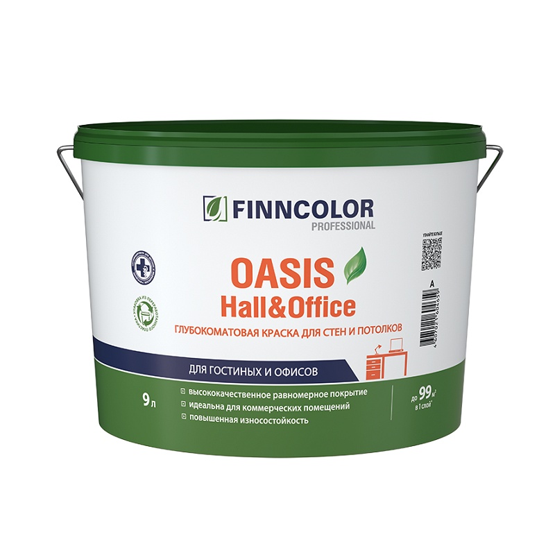 Краска для стен и потолков Finncolor Oasis Hall&Office 4 основа А (9 л)