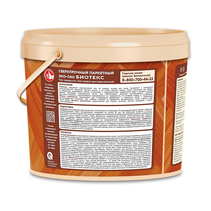 Эко-Лак водоразбавляемый паркетный Текс Биотекс, глянцевый (2 л)