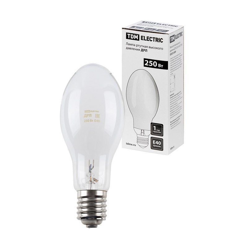 Лампа ртутная высокого давления E40, 250Вт, L/d=228/91мм (ДРЛ)