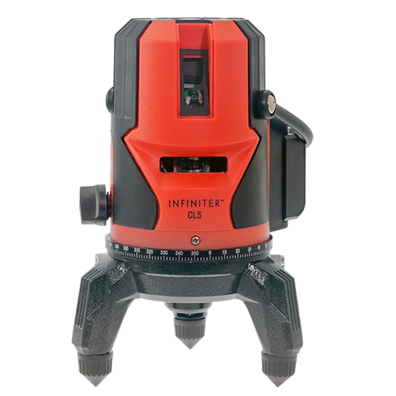 Предназначен для построения и контроля вертикальных и горизонтальных плоскостей и линий. Infinite CL5 строит 4 вертикальные плоскости и одну горизонтальную плоскость, точки отвеса (зенит и надир), и обеспечивают компенсацию наклона корпуса до 3 градусов. Основание прибора с выравнивающими винтами, резьба для установки на штатив 5/8" обеспечивает удобство работы. Импульсный режим позволяет использовать детектор для увеличения дальности работы, а также для работы с детектором в условиях, когда лазерный луч плохо виден. Прибор пригоден как для эксплуатации в закрытых помещениях, так и на открытых строительных площадках.