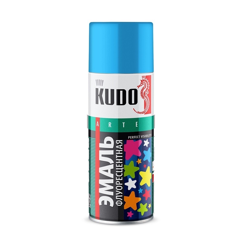 Эмаль аэрозольная Kudo KU-1202 флуоресцентная голубая (0,52 л)