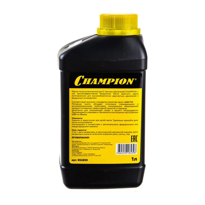 Масло для 2-х тактных двигателей Champion JASO FD бездымное полусинтетическое (1 л)