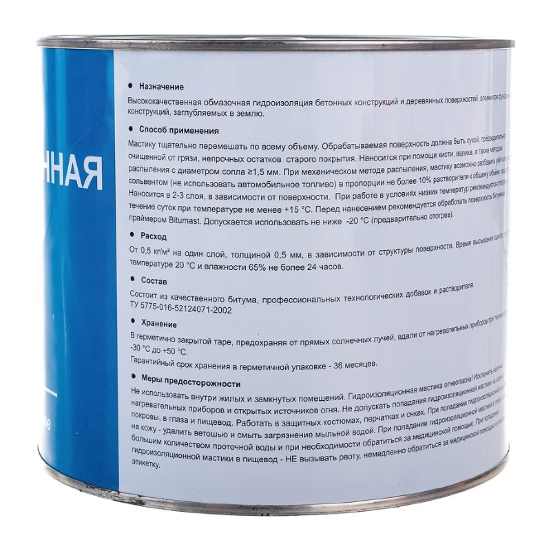 Мастика гидроизоляционная Bitumast, металлическое ведро, 2 л