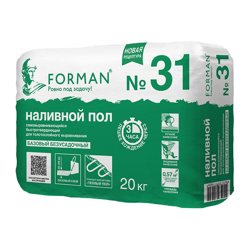 Наливной пол Форман 31 для первоначального выравнивания, 20 кг