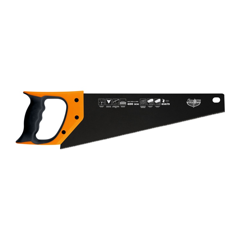 В строительном магазине Сатурн можно купить товар "Ножовка по дереву Варяг 85679 3х гранная заточка, мелкий зуб, 400 мм" по цене от 1312 руб с доставкой за 2 часа по Стерлитамаку или оформить самовывоз.