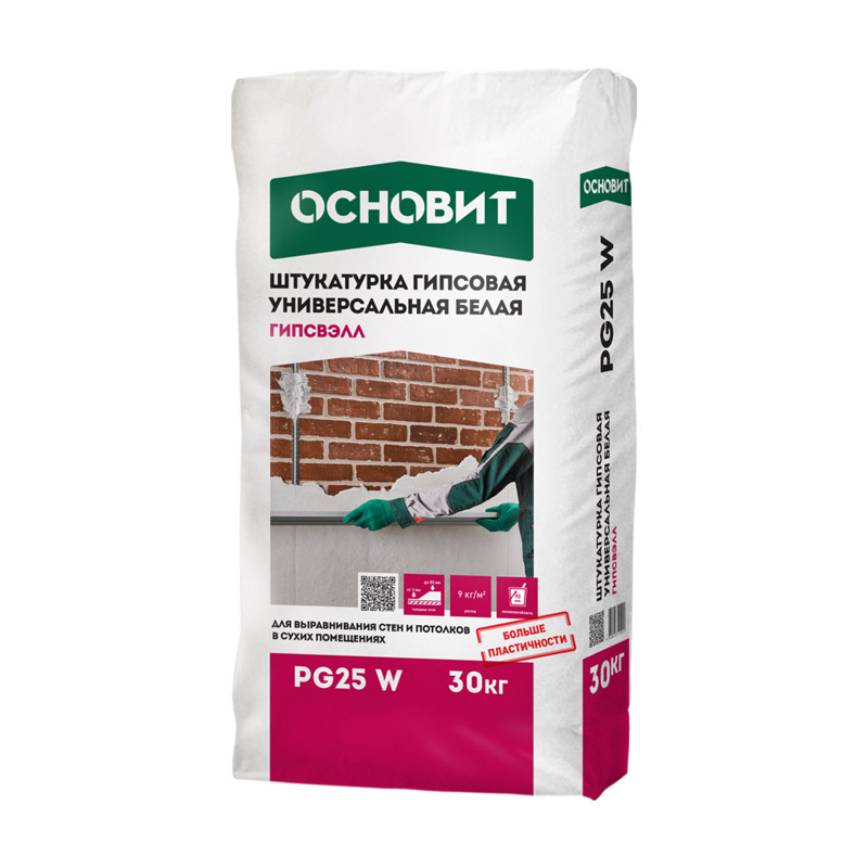 Штукатурка гипсовая Основит Гипсвэлл PG25 W (Т-25) белая, 30 кг