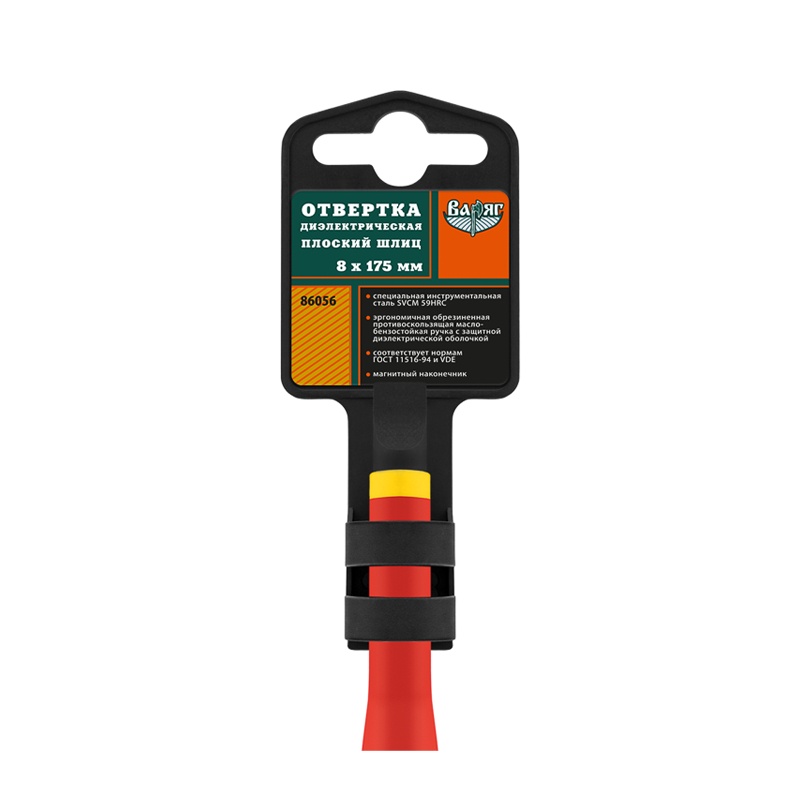 Отвертка Варяг 86056 диэлектрическая 1000В, SL 8х175 мм