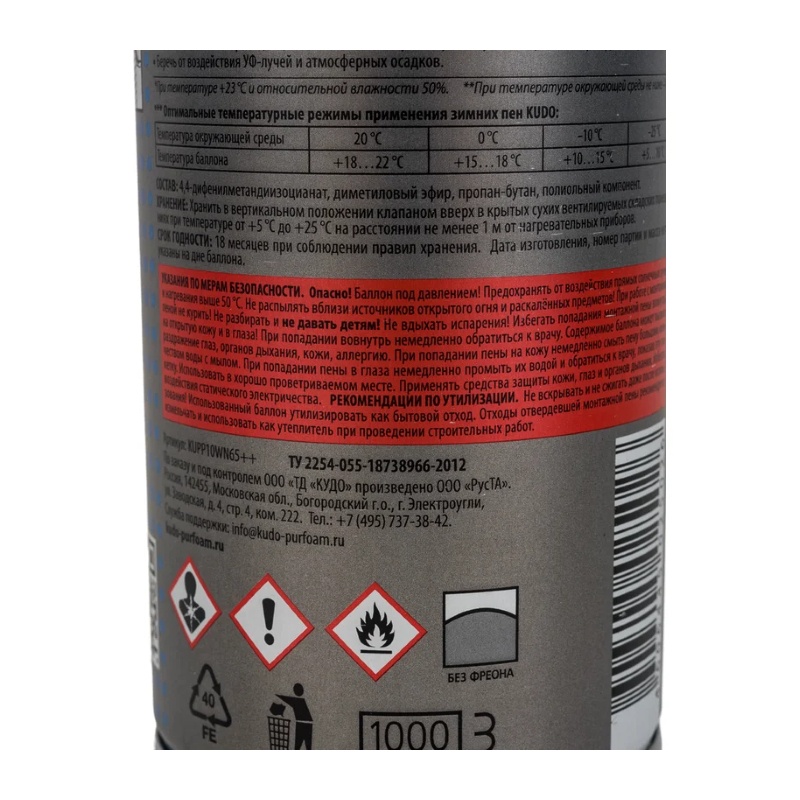 В строительном магазине Сатурн можно купить товар "Пена полиуретановая монтажная Kudo Proff 65+ Arktika (1 л)" по цене от 610 руб с доставкой за 2 часа по Стерлитамаку или оформить самовывоз.