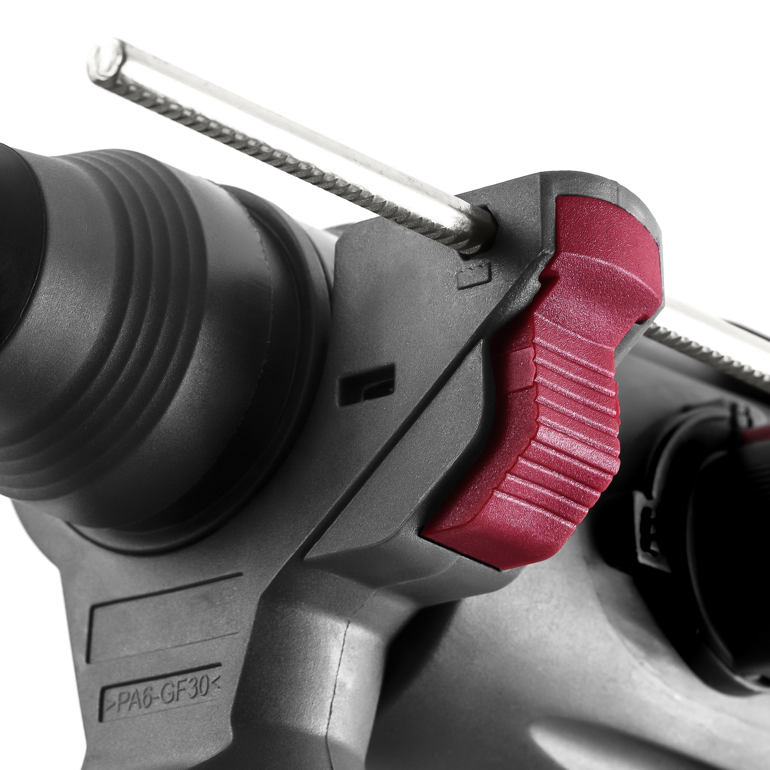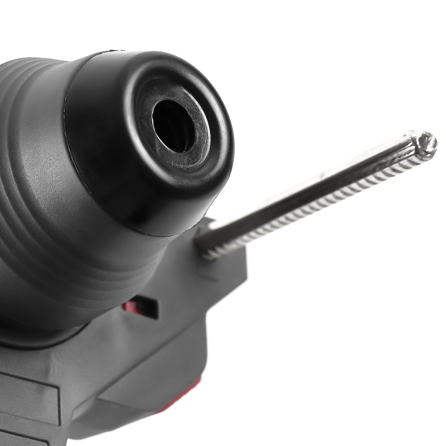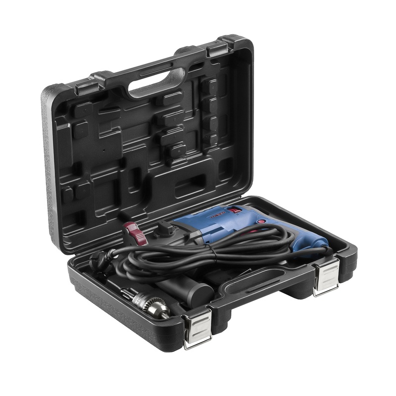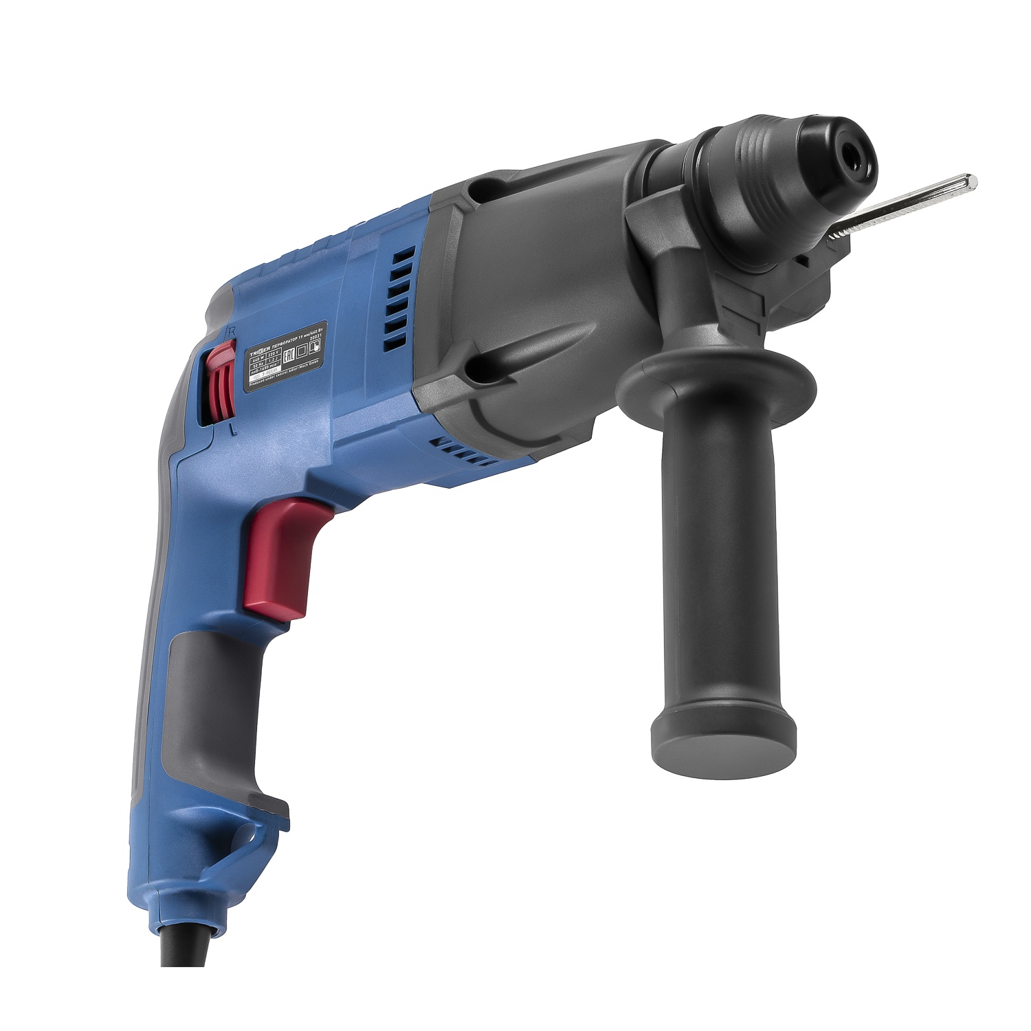 - В комплекте: переходник SDS+, цилиндрический патрон с ключом, дополнительная рукоятка,ограничитель глубины сверления, запасные щетки, пластмассовый кейс.