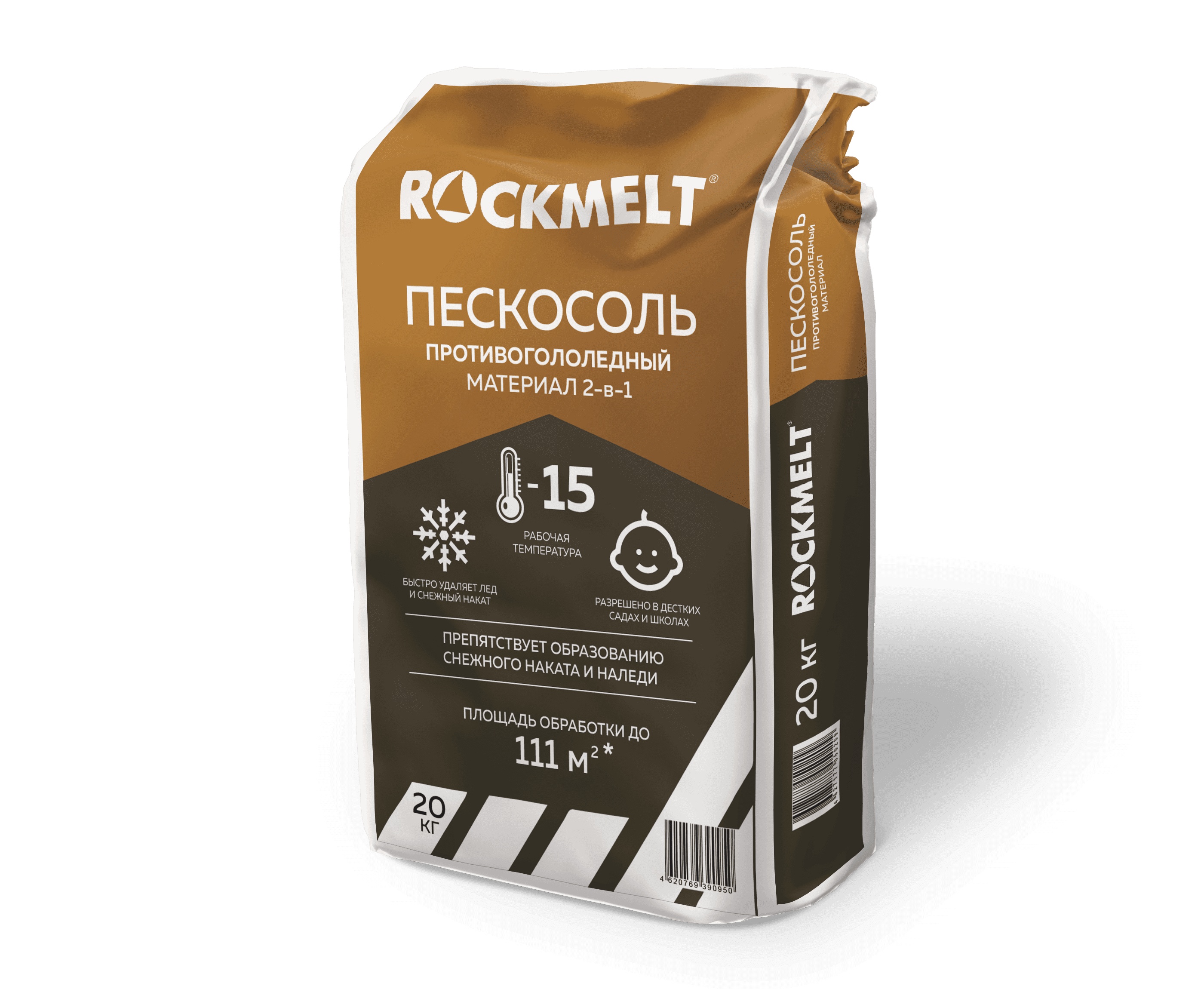 Противогололедный материал Rockmelt Пескосоль -15°C (20 кг)