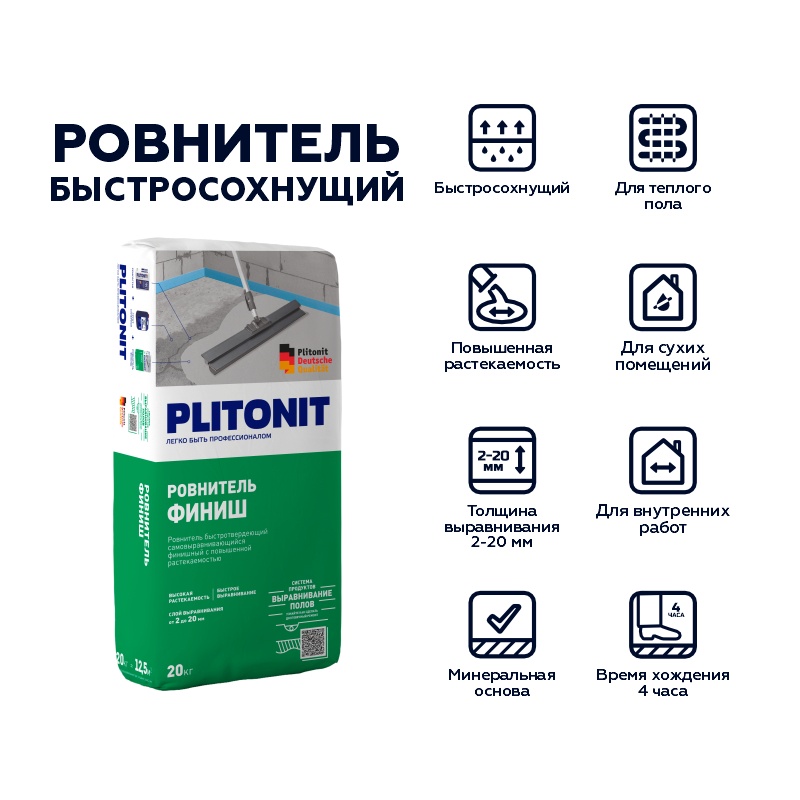 Наливной пол Plitonit Финиш на минеральной основе 2-20 мм, 20 кг