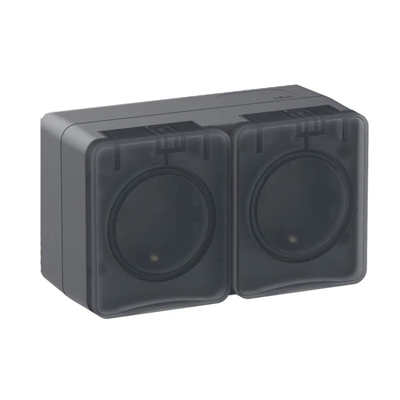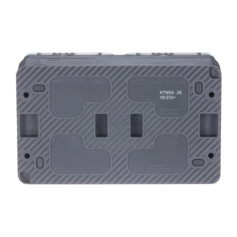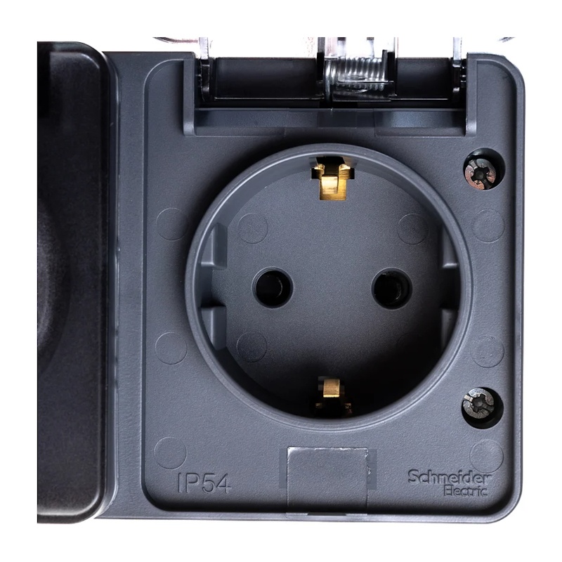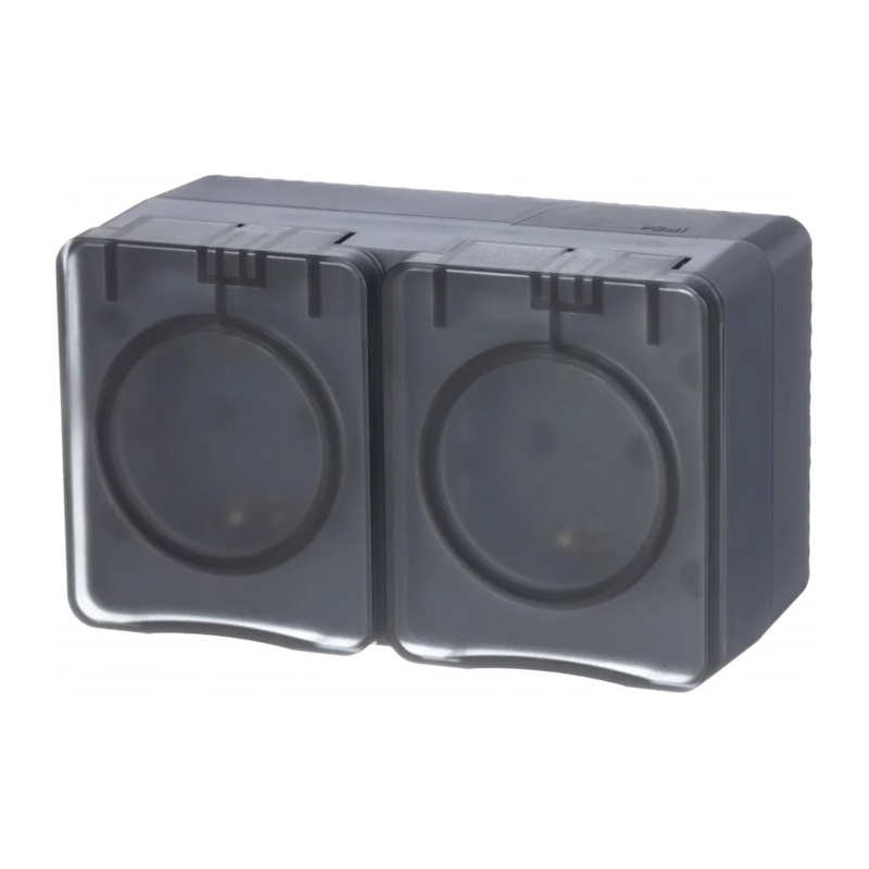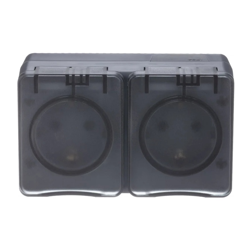 Предназначен для открытой установки. Серия AtlasDesign Profi54 создана специально для тех мест, где требуется повышенная защита от влаги и пыли. Двухместная, с заземлением, шторками и крышкой.