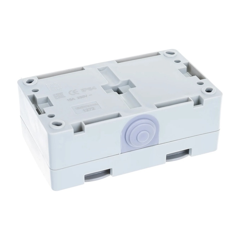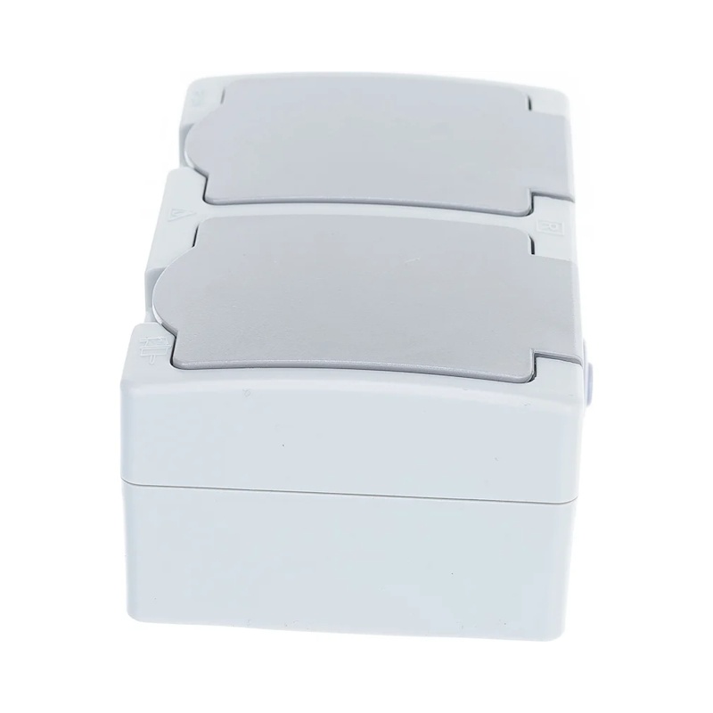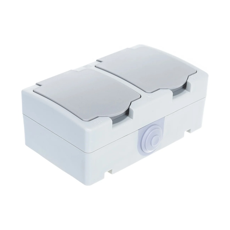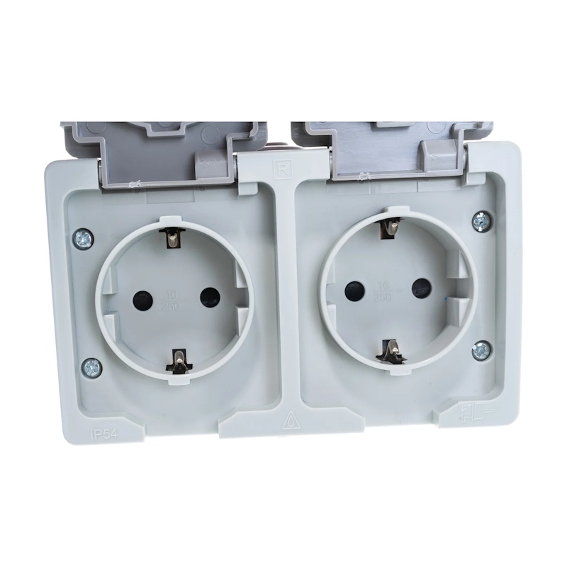 Розетка о/у Аллегро 1272, 2 гнезда, горизонтальная, с/з, з/ш и крышкой, IP54, серая
