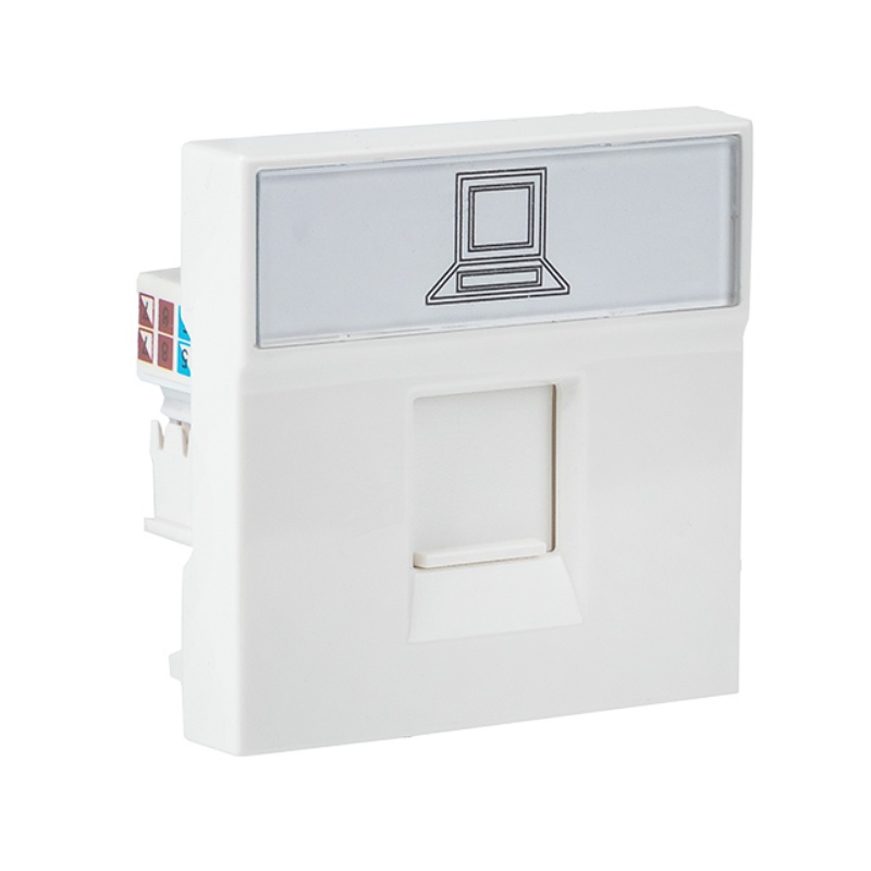 Розетка в рамку компьютерная EKF 45х45 мм RJ-45 кат.5е, 2 модуля, белая