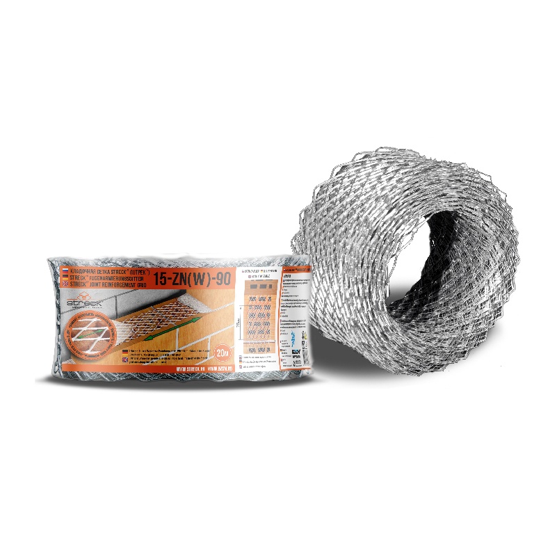 Сетка кладочная. ЦПВС STRECK 25х1,25х0,4 мм, оцинкованная ячейкa 15х15 мм (0,09х20 м)