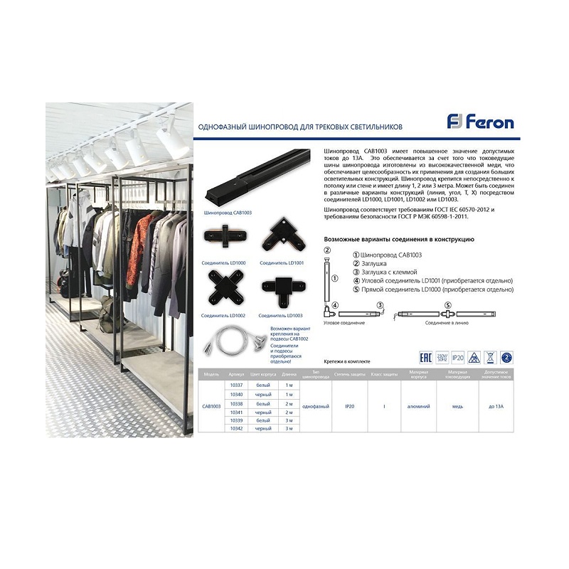 Шинопровод накладной 1ф д/трековых светильников, с заглушкой, токовводом и крепежом, L=1м, белый