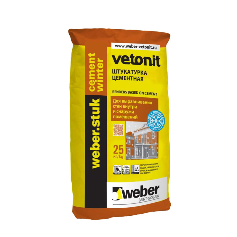 Штукатурка цементная Vetonit Stuk Цемент серая зима, 25 кг