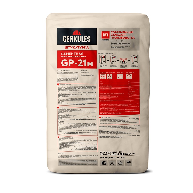 Штукатурная смесь Gerkules GP-21М для машинного нанесения, 30 кг