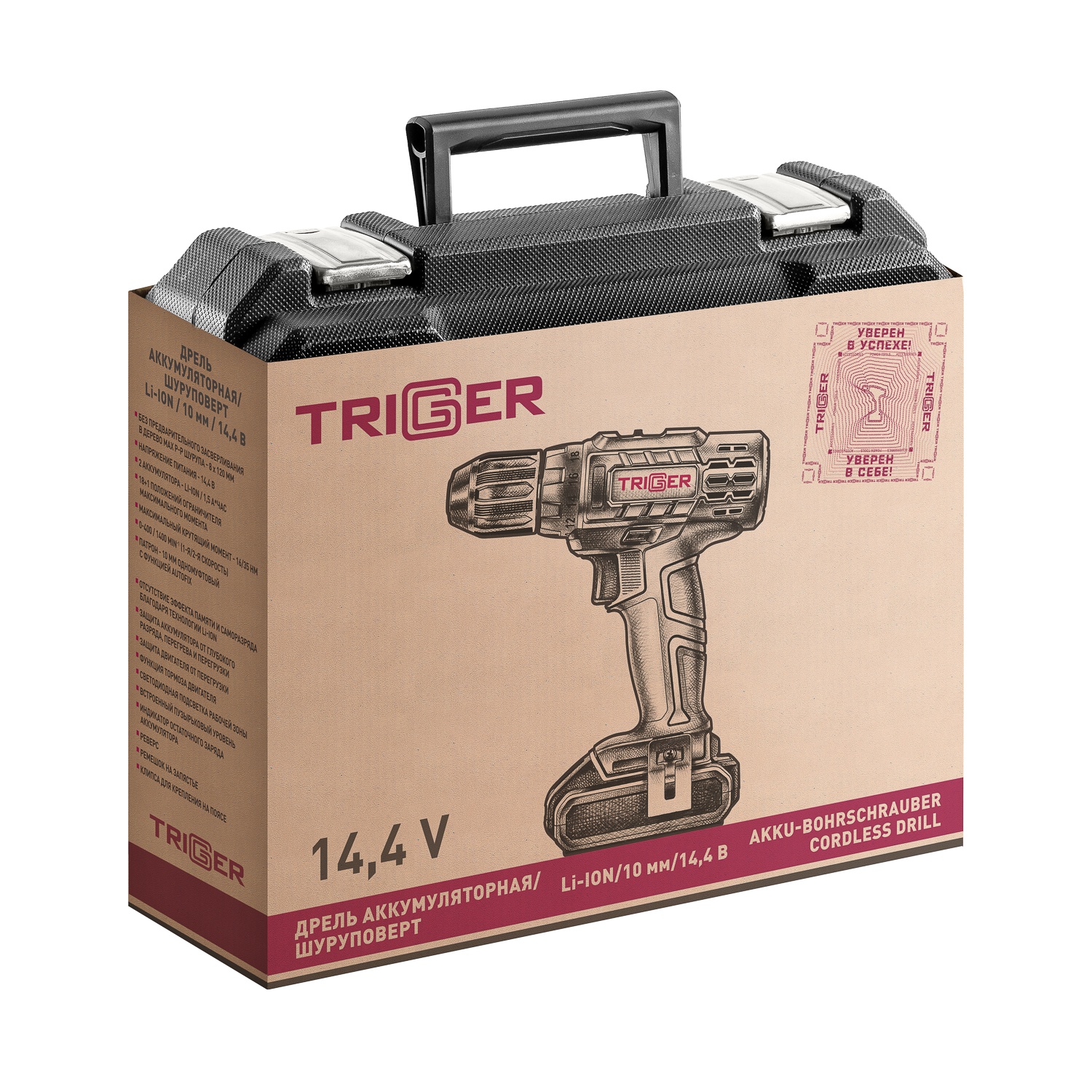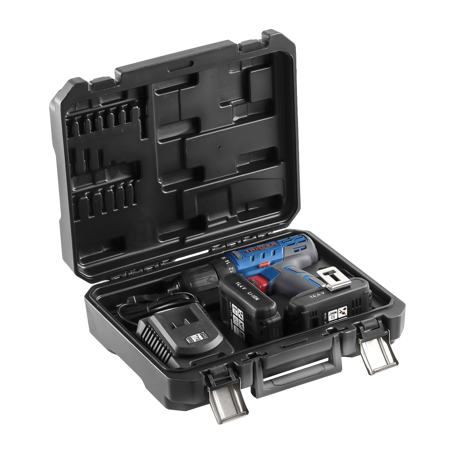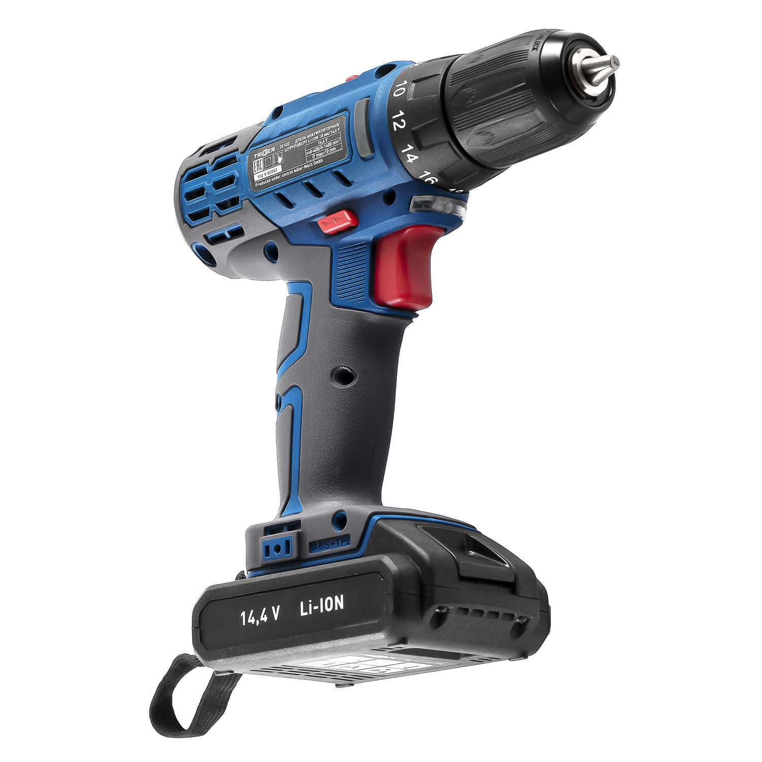 Дрель-шуруповерт Trigger 20102, 2 аккумулятора Li-ion (1,5Ач), 14,4V, 10 мм, 35 Нм, слайдер, кейс