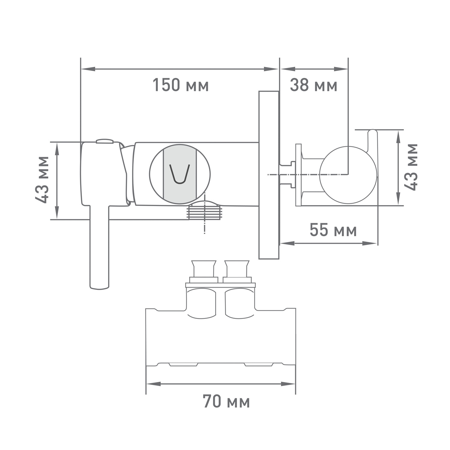 Комплектация: смеситель составной: внутренняя и внешняя части, шланг для душа ПВХ 1,5 м армированный алюминиевой спиралью и продольными нейлоновыми нитями, душевая лейка d=33 мм 1 режим, пластиковый держатель для лейки с крепежом, зажимные винты - 2 шт., ключ шестигранный - 1 шт., паспорт изделия.