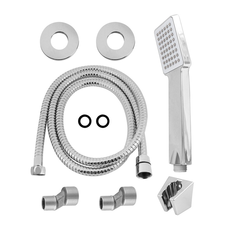 Комплектация: смеситель, металлизированный шланг для душа 1.5 м, душевая лейка (диаметр 60*80 мм) 1 режим, пластиковый держатель для лейки, комплект крепежа, эксцентрики, составные декоративные накладки, паспорт изделия.