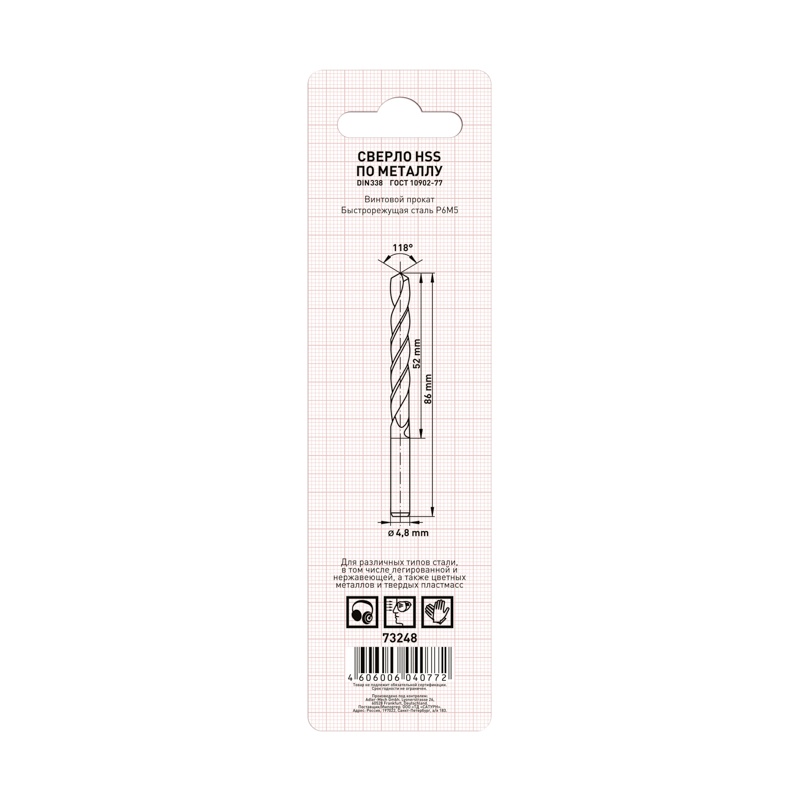 Сверло по металлу Trigger 73248 Р6М5 4,8 мм (уп. 2 шт.)