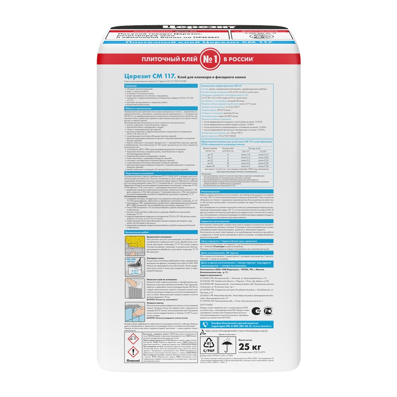 Клей для плитки Церезит CM 117, универсальный (25 кг)