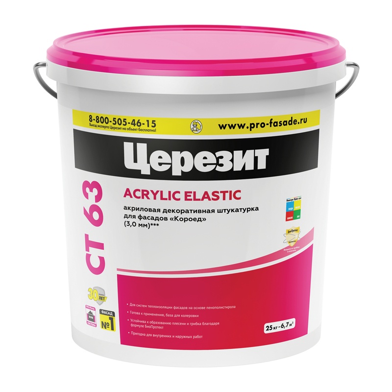 Штукатурка декор. полимерная Церезит CT 63 короед 3,0 мм база, 25 кг